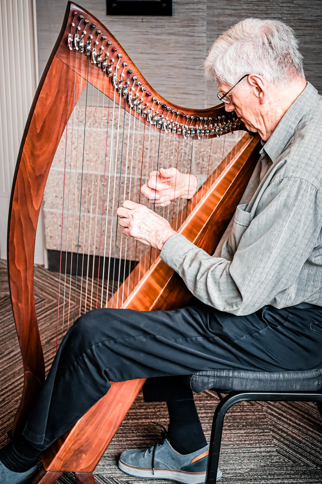 The afternoon begins gently, as Bob Peel welcomes guests with the timeless beauty of the Irish harp — setting the tone with elegance and heritage.